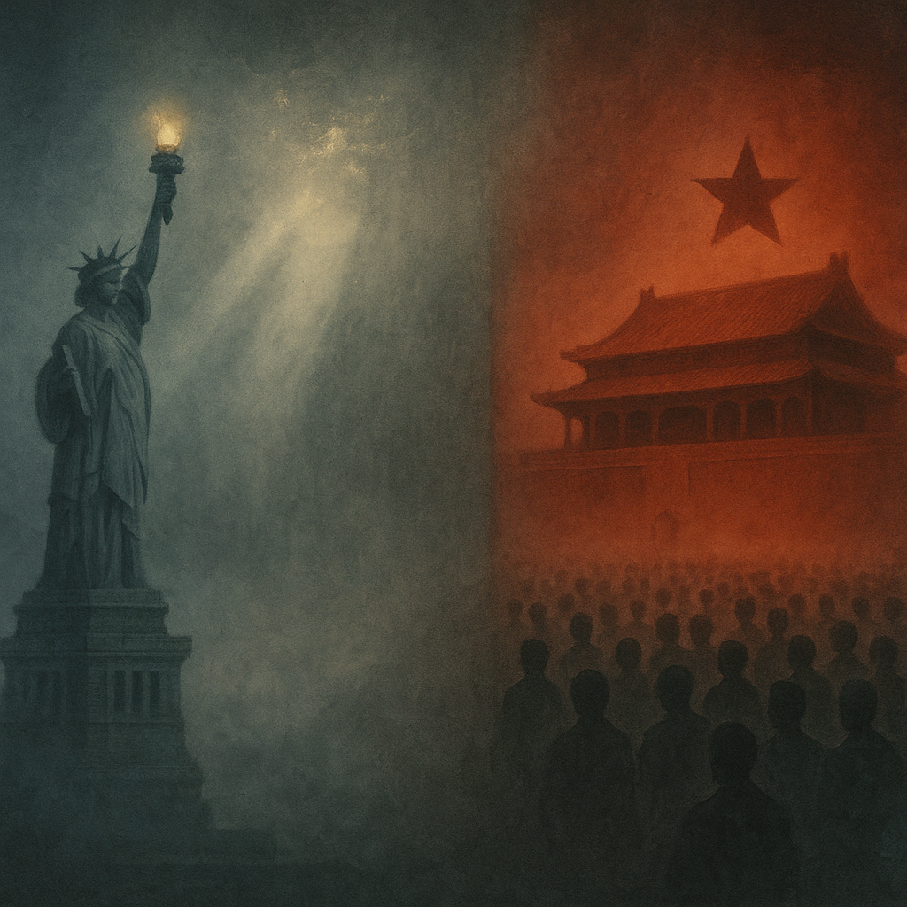 Thus two civilizations stand facing each other, each blinded by the other’s void: the Chinese cannot see the light of freedom, and Americans cannot see the shadow of servitude. An East that has lost faith meets a West whose faith is fading — and together they enact a tragedy of mutual misunderstanding, a “soul-to-soul illusion” on the global stage.
