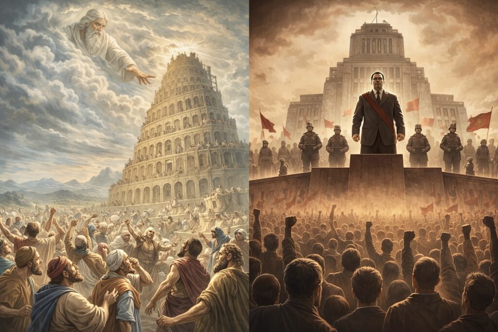 The Tower of Babel has not disappeared; it has simply changed its form. It may appear as military dominance, economic expansion, ideological export, data control, or the individual ascent within structures of power. Yet its core remains unchanged: “Let us make a name for ourselves.”